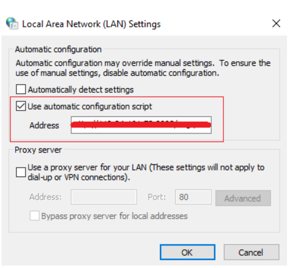 3. 选择 Use automatic configuration script(使用自动配置脚本), 并在地址栏输入 管理员给的加速地址(加速链接在旺旺自动回复里也有)电脑设置完成。